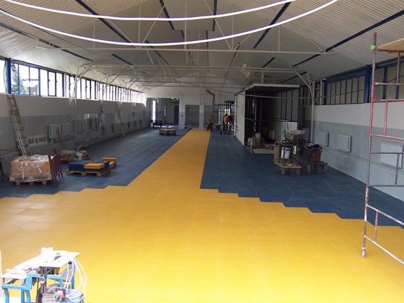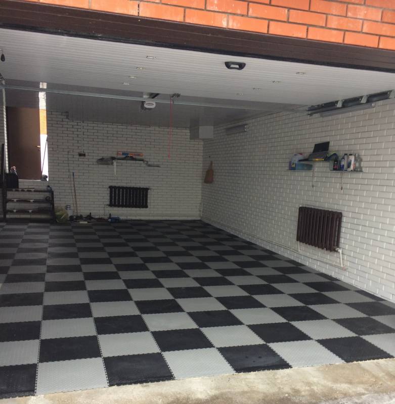 Пластиковая плитка, предназначенная для быстрого монтажа прочного сборного пола в гараже, цехе промышленного предприятия, тренажерном зале, тренировочном зале фитнес клуба, в игровых залах детских учреждений, залах столовых, холлах и коридорах административных здании и гостиниц.