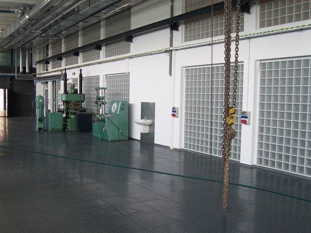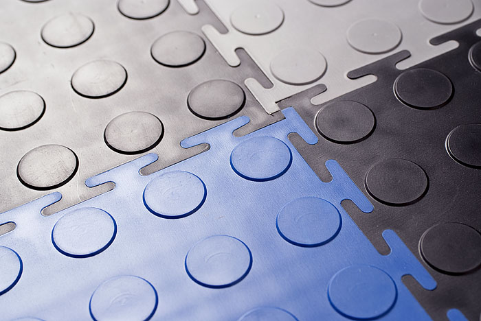 Плитка устойчива к воздействию соли, дорожных реагентов, шипов, машинного масла и не дает искры от контакта с металлическими предметами, что делает ее не заменимой для быстрой сборки пола в производственных помещениях.