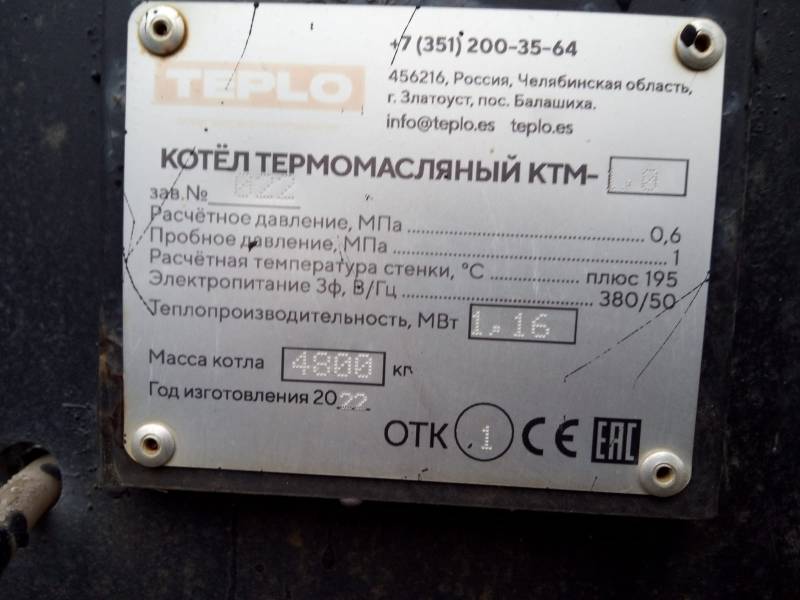 Котёл термомасляный предназначен для нагрева термального масла до температуры