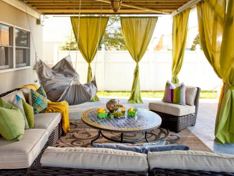 Самым любимым местом для отдыха на открытом воздухе считается терраса или веранда. Для того чтобы времяпровождение в летний зной было комфортным, эту зону необходимо правильно обустроить, используя для декорирования уличные шторы. Они послужат не только надежным навесом от палящего солнца, но и придадут конструкции красивый вид, гармонично вписываясь в стилевое оформление участка.