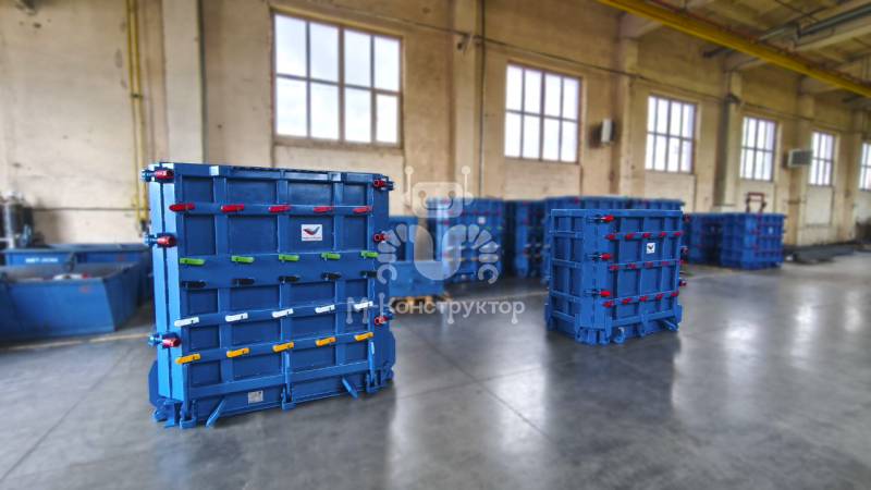 Борта форм установлены на силовую раму и подвижны, что обеспечивают шарниры. Такая конструкция ускоряет процесс формования и делает эксплуатацию удобнее.