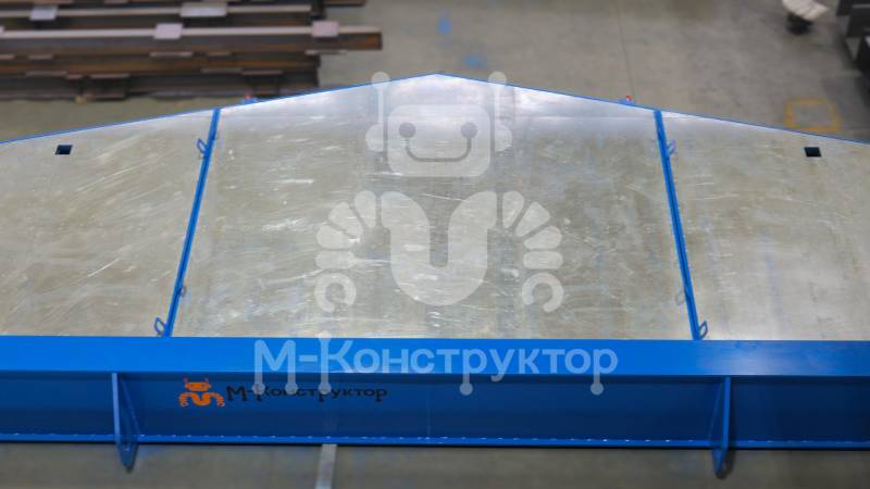 Металлоформа представляет собой неразборную конструкцию треугольного сечения длиной 20 134 мм, шириной 3 825 мм и высотой 790 мм. Габариты изготавливаемого изделия — 17 980 × 3 010 × 300 мм. С торцов силовой рамы установлены упоры для запуска и натяжения арматуры, закрытые защитными кожухами для обеспечения безопасности персонала.